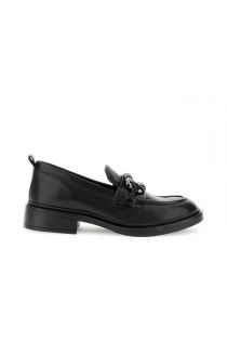 Leather loafer with a jewel-effect banded accessory. Leather lining and insole. 4 cm high heel. Elegant and modern, perfect for casual chic and formal looks.