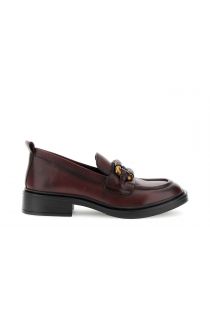 Leather loafer with a jewel-effect banded accessory. Leather lining and insole. 4 cm high heel. Elegant and modern, perfect for casual chic and formal looks.