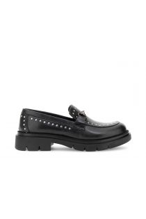 Leather loafers with a horsebit and decorative studs. Bold and feminine design, lug sole, and 3.5 cm heel. Leather lining and insole. Elegance and character every day.