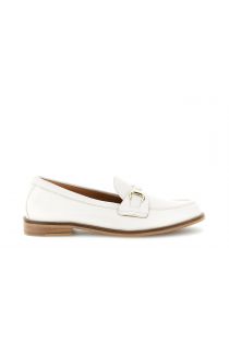 Smooth leather loafers with a gold metal buckle. leather insole and 1.8 cm heel. a shoe with a simple and refined design. clean lines a slightly squared toe and a low heel for everyday comfort. these loafers are perfect for elegant yet casual looks from work to leisure.