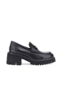 Brushed leather loafers with an elegant front buckle. Leather lining and insole. Lugged sole with a 5.5 cm heel and 2.5 cm platform. Ideal for a sophisticated and trendy look, perfect for the city.