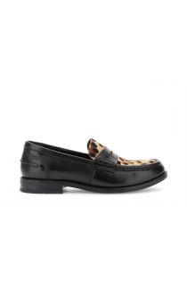Leather loafers with a spotted pony-effect leather trim. Leather insole for maximum comfort. 4 cm heel. Bold style, perfect for bold and original looks.