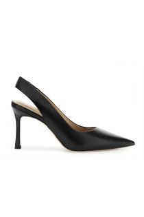 Elegant leather slingback pump with elastic lace at the back. lining and comfortable insole are in leather. 8.5 cm high heel with tapered shape. a timeless classic that cannot be missing from your wardrobe.