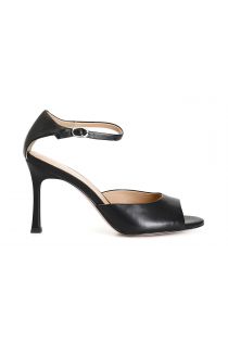 Elegant leather sandal with ankle strap and patch on the back. lining and comfortable insole are in leather. 8.5 cm high heel with tapered shape. a timeless classic that cannot be missing from your wardrobe.