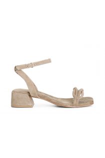 Leather sandals with knot on the upper. lining and insole are in leather. ankle strap. the heel is 4.5 cm.