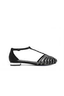 Leather “t” cage sandals with a back reinforced heel and mignon rhinestones. ankle strap.