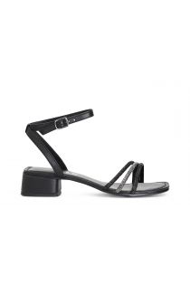 Leather sandals with rhinestone mignon heel h. 35mm.