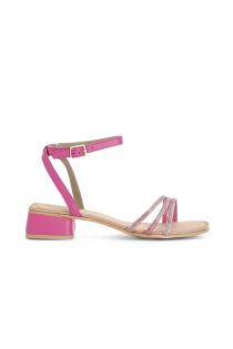 Leather sandals with rhinestone mignon heel h. 35mm.