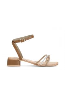 Leather sandals with rhinestone mignon heel h. 35mm.