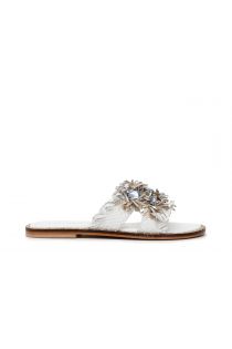 Leather sandals with square metal accessories and criss-crossed straps.