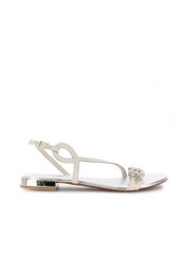 leather sandals with strap and double rhinestone buckle off white