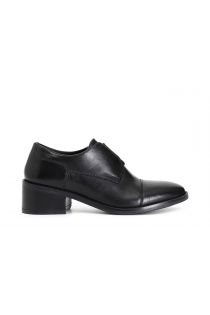 Women's leather derby shoe with stretch panel. heel height 50mm. the insole is leather.