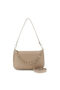 leather shoulder bag with gold chain handle nude