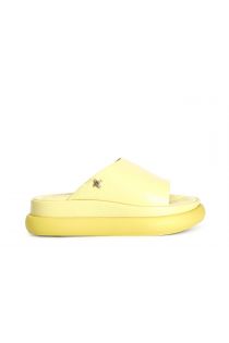 Leather slipper with large band. the lining and insole are in leather. the wedge is 4.5 cm high. perfect footwear for every situation. ideal for your beach adventures but also for a walk in the city. perfect combination between elegance and practicality.