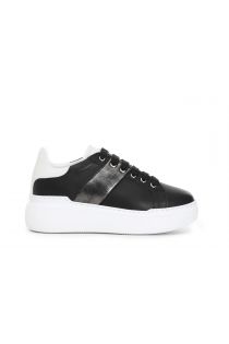 Leather sneakers with high rubber sole and contrasting colour details such as the laces and heel