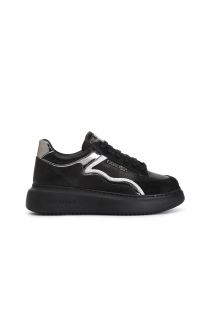 Leather sneakers with glitter and patent inserts embellished with a metal cafènoir logo on the side. box sole and leather insole.
