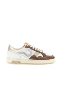 leather sneakers with laminate inserts white/brown