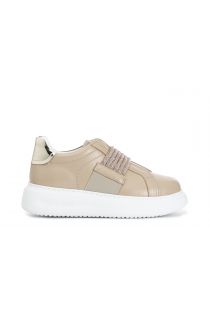 leather sneakers with rhinestone band beige