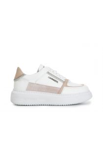 leather sneakers with rhinestone details white combo