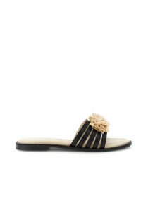 leather strappy slipper sandals with raffia accessory black