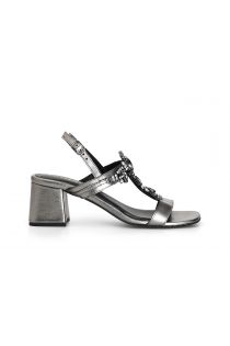 Leather "t" sandals with jewel accessory. lining and insole are in leather. comfortable 5.5 cm high heel.