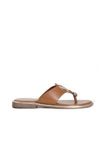 Leather thong sandals with accessory. lining and insole are in leather. the heel is 2 cm high. comfortable to wear and easy to match.