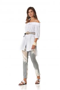 LONG SHIRT WITH BOAT NECK IN COTTON POPLIN
