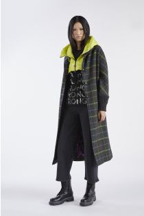 Long chequered coat in a warm wool blend fabric with knitted cuffs. The garment is sold without the hooded collar, which refers to item code C7JU0042 that can be purchased separately.