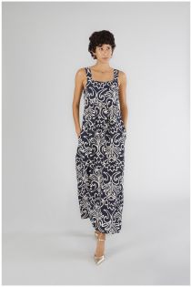 Long dress with shoulder straps in viscose marocaine with exclusive print. wear it with sandals to make your look casual and elegant.