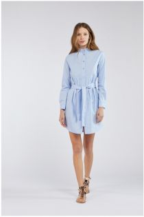Long poplin shirt with mandarin collar enhanced with seams and slight gathers at the waist that add movement and an easy fit.