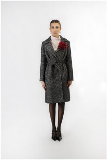 Long robe-like coat in herringbone fabric for an extremely trendy look.