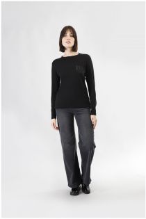 Long-sleeved t-shirt made of stretch cotton with "be noir" print on the front.