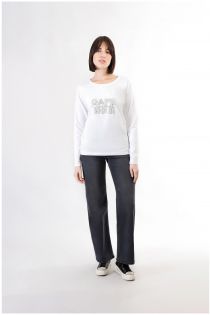 Long-sleeved t-shirt with round neckline made of stretch cotton. three-dimensional cafènoir logo in rhinestones.