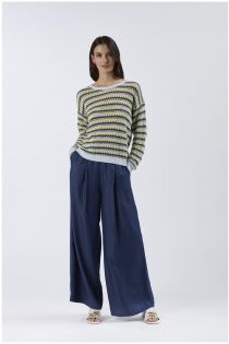Multicoloured crew-neck sweater with long sleeves in cotton-blend yarn with crochet work. perfect basic garment for a 70s look. combine with a pair of flare jeans or a maxi skirt.
