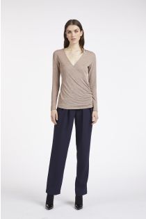 long-sleeved, crossover neck t-shirt in lurex viscose jersey