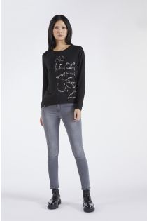 Long-sleeved T-shirt in stretch viscose jersey with logo embroidered with sequins.