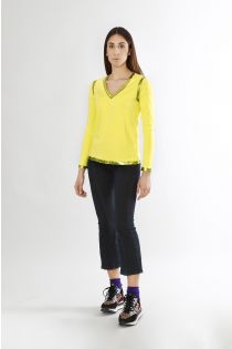 long-sleeved v-neck jersey t-shirt with laminated collar