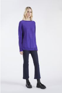 Loose sweater in cashmere blend yarn with contrasting lurex details and decorative lace on the hem