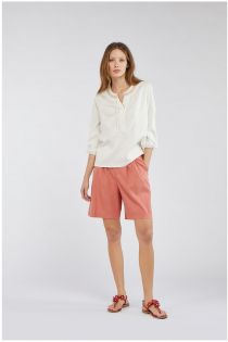 Wide, practical and comfortable shorts, made of particular garment-dyed technical fabric. Elasticated embroidery in the skinny belt for better comfort and small pleats at the waist that create slight volume at the pockets.
