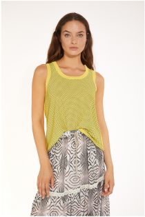 Sleeveless top made with a mix of viscose yarn and fabric.