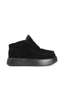 Women's ankle boot with raised sole and stitching. suede upper and synthetic fur lining.