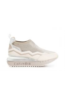 Lurex fabric and leather slip-on sneakers running sole with insert and logo. the leather section is associated to the fabric through a delicate play of delicately finished zigzags.