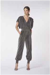 Jumpsuit with wide sleeves and odalisque trousers made of an exclusive lurex fabric. a touch of sparkle and extravagance to make summer evenings unique.