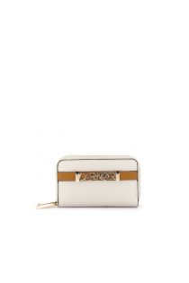 medium wallet with double zip and grainy leather effect cream/leather