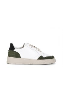 men's laced leather sneakers multi green