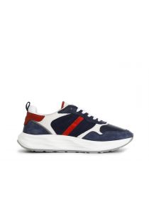 Multicolour men’s running shoes in leather and fabric with a new sole characterised by an interplay of hollows that make the shoe unique.