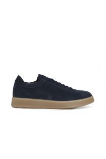 Suede sneakers with even rubber sole and contrasting colour laces