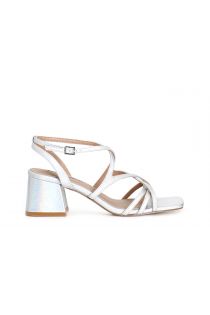 Metallic effect sandals with crossover. the insole is in leather. comfortable 5.6 cm heel.