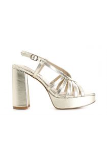 Metallic leather cage sandals. leather insole. 30 mm-high platform and 110 mm heel.