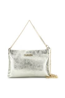 Elegant metallic leather clutch with a removable shoulder strap with snap hooks and a chain handle. compact and sleek it's ideal for completing evening looks and special occasions. dimensions: 24 cm (length) × 16 cm (height) × 3.5 cm (depth)